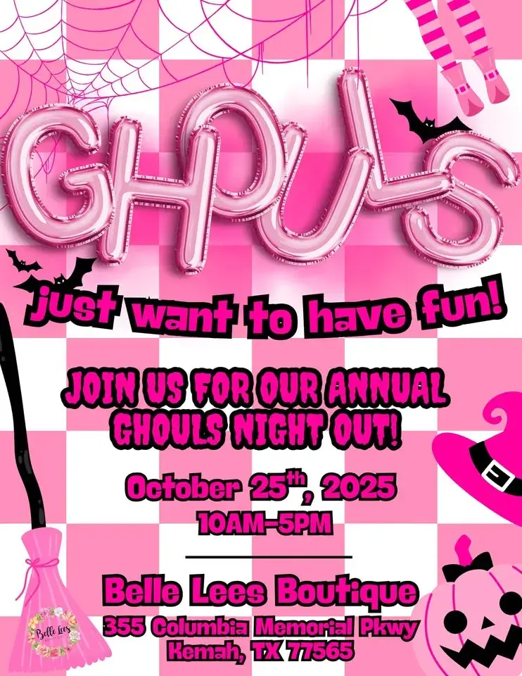 October 25th 2025 10AM – 5PM Belle Lees Boutique — 355 Columbia Memorial Pkwy, Kemah, TX 77565